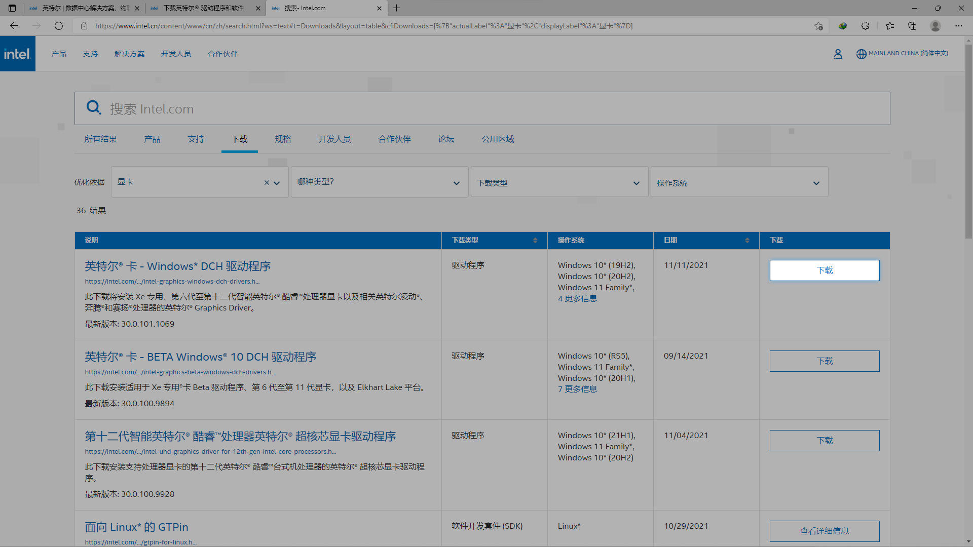 首页 驱动 英特尔(intel)核显安装驱动2022/9/26 一、下载驱动 进入“英特尔(intel)官网”,点击“支持” – “下载中心”,进入到“驱动程序和软件”页面;在页面点击“图形”,找到“英特尔® 卡 – Windows* DCH 驱动程序”点击后面的“下载”按钮,即可下载驱动安装包。 ①②③④ 上一个 下一个 二、安装驱动 打开驱动安装包后,依次点击“开始安装” – “我同意”(需将滑块下拉至最底部) – “开始”等待驱动自动安装完成;提示“安装完成”后,点击“可选重启”或“完成”(推荐点击“可选重启”),即可完成驱动的安装。 ①②③④⑤ 上一个 下一个