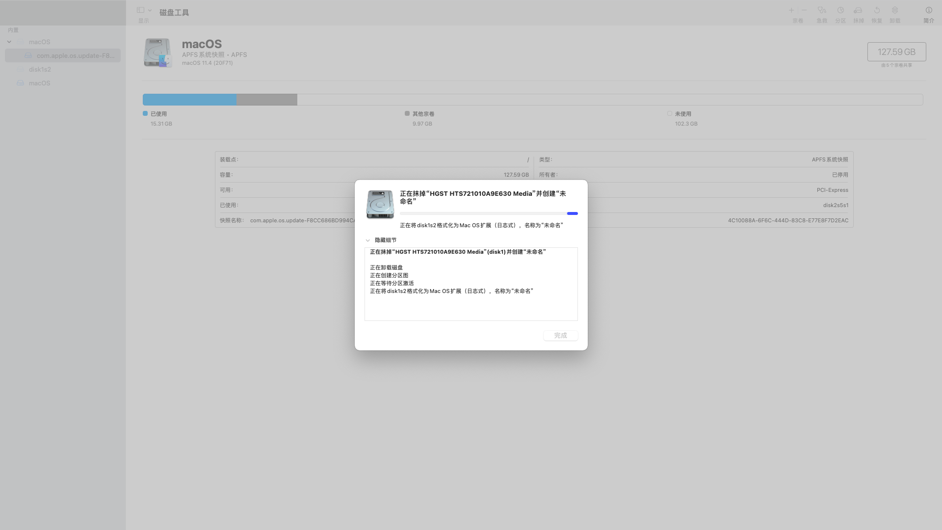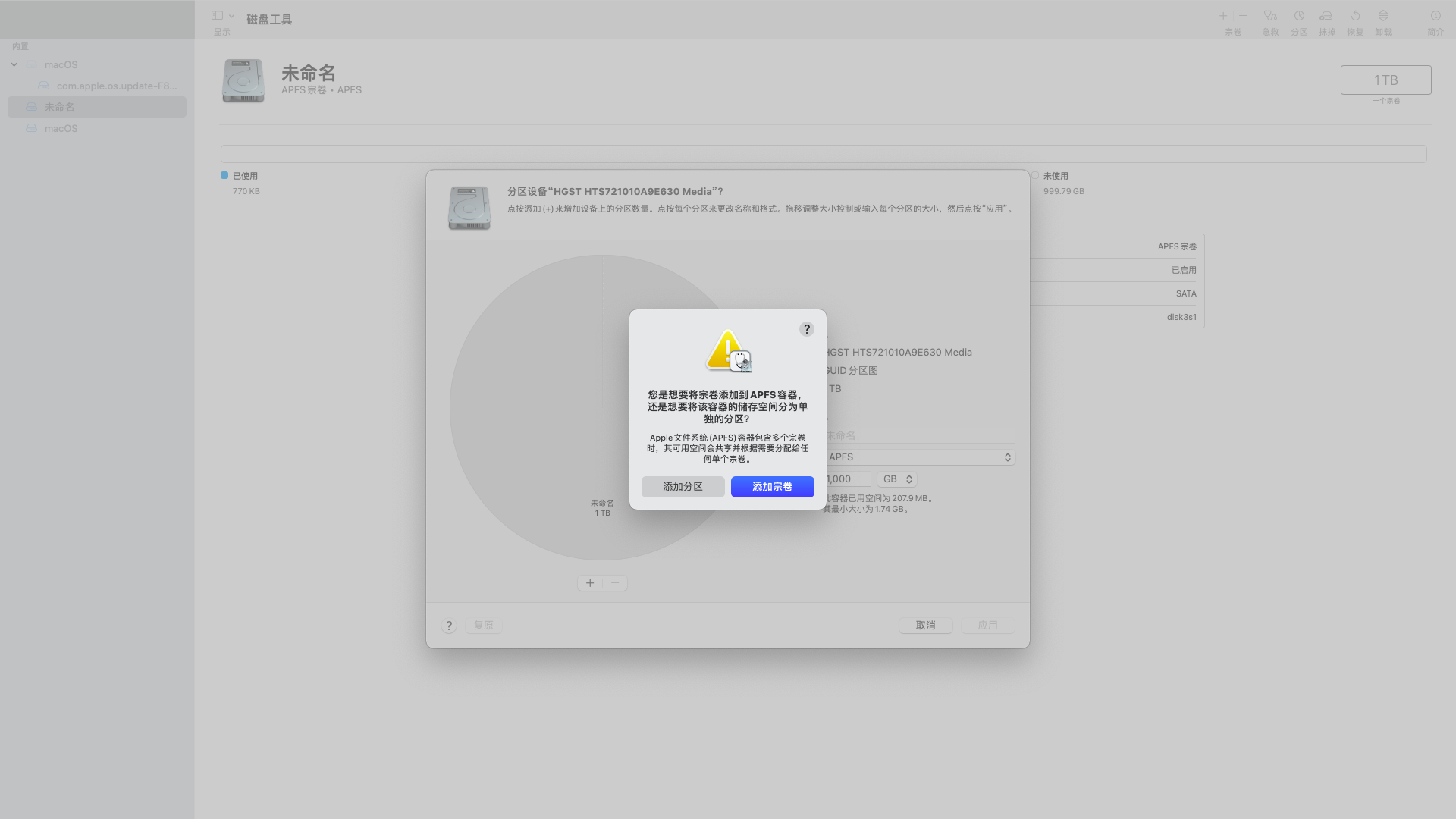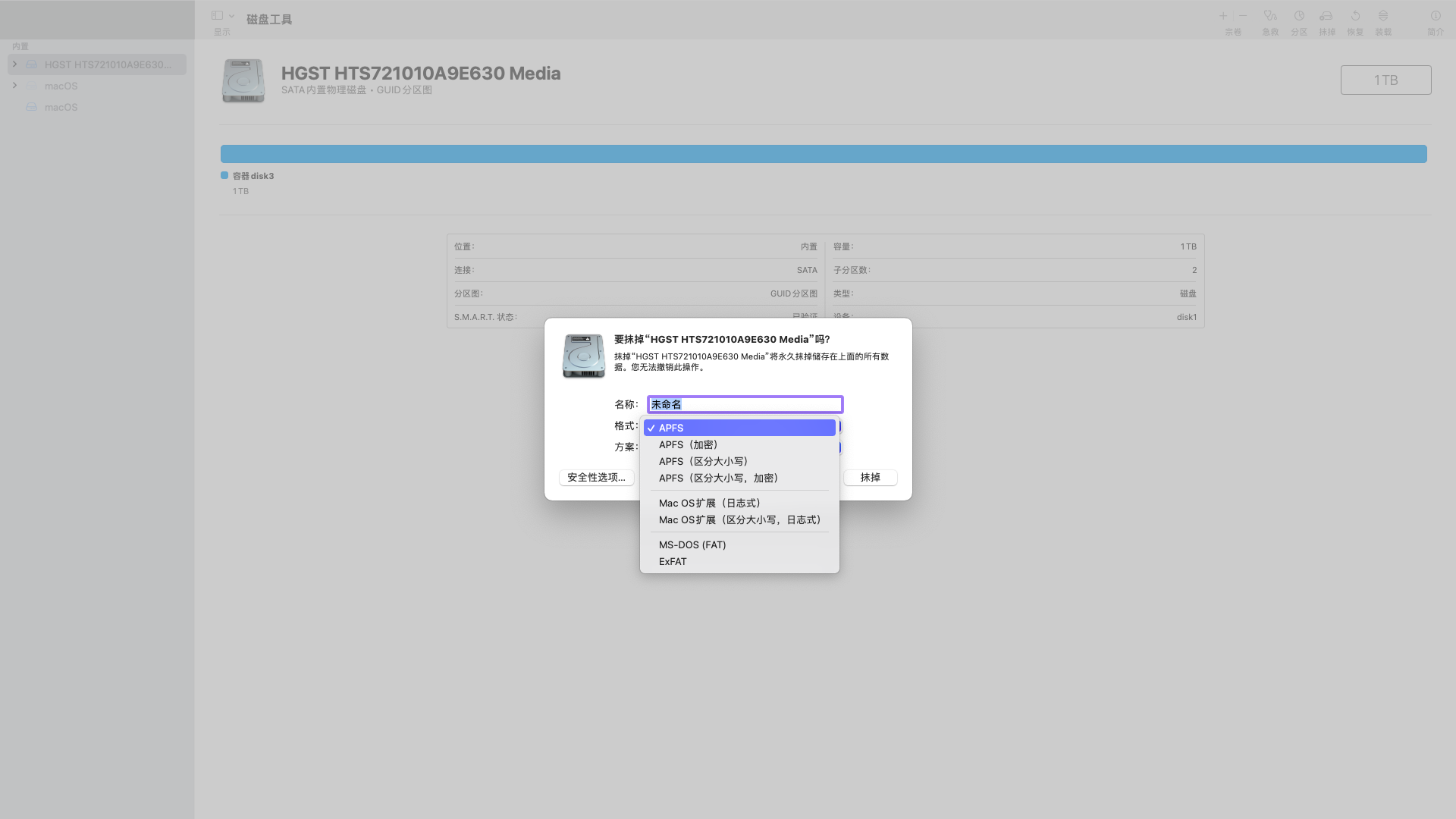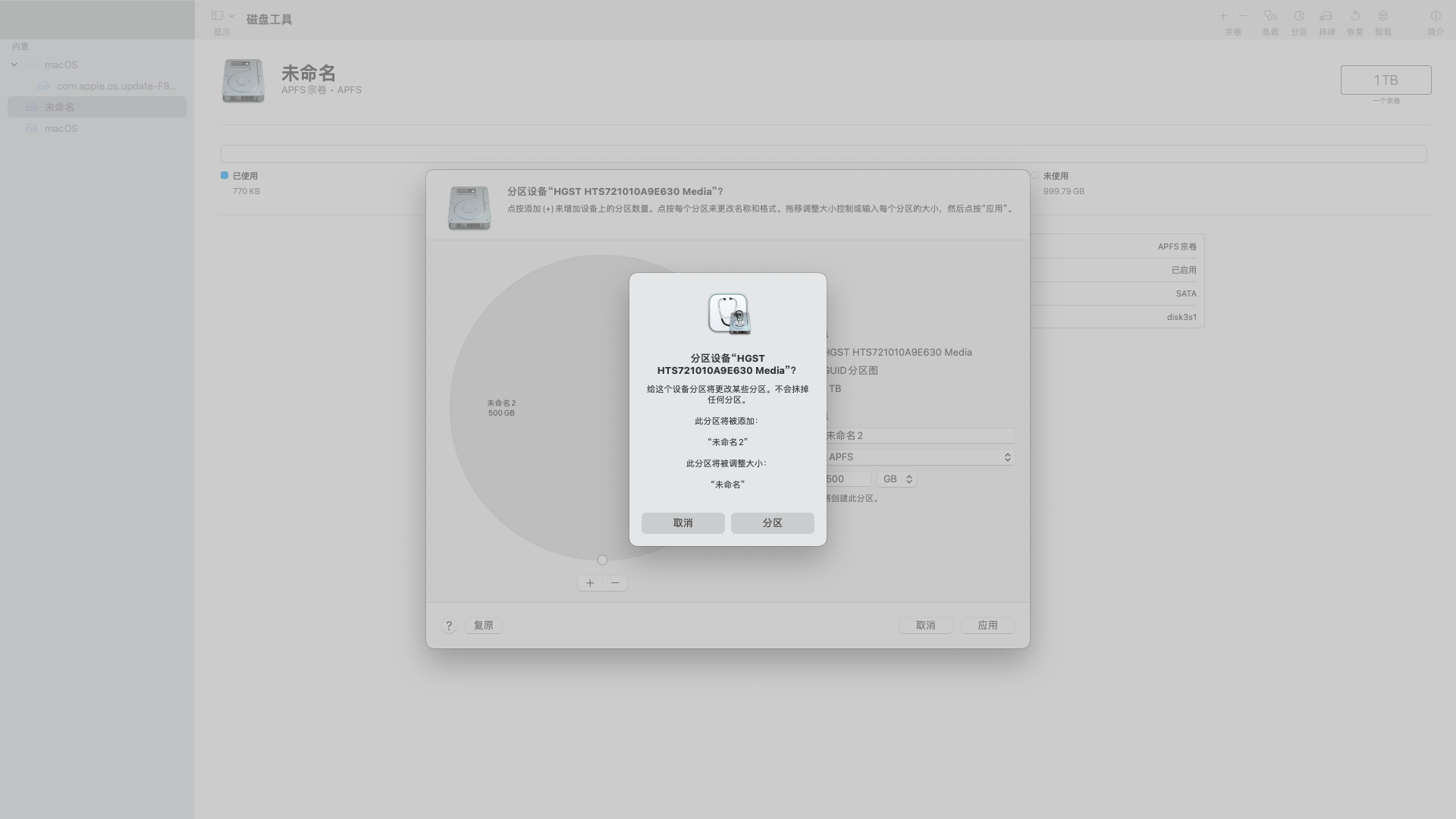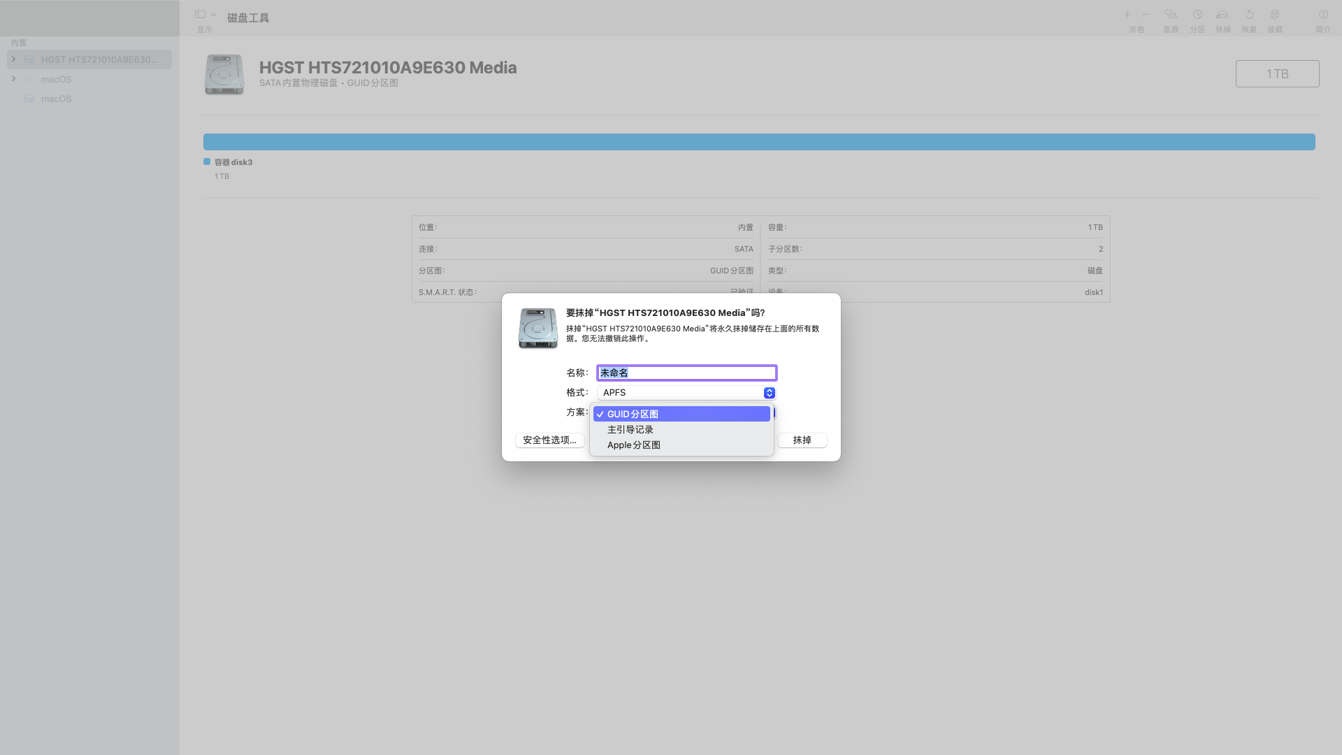 首页 硬盘 Mac OS新硬盘初始化和分区2022/9/28 一、进入磁盘工具 方式一 依次进入“访达”(Dock栏内最左侧蓝色笑脸的图标) – “其他(文件夹)”,即可找到“磁盘工具”。 ①②③ 上一个 下一个 方式二 在顶部菜单栏依次进入“前往” – “实用工具”,即可找到“磁盘工具”。 ①② 上一个 下一个 二、“抹掉”硬盘 新硬盘进行“抹掉”后,方可正常识别到可用容量和使用,如需增加硬盘的分区数量,可参照硬盘分区步骤。点击磁盘工具内右上角的“抹掉”按钮;输入文字进行“名称”的设置;“格式”:推荐使用“APFS”格式¹,外置存储设备如需在Windows和Mac OS使用推荐“exFAT”格式;“方案”选择“GUID分区图”;名称、格式、方案设置完毕后点击“抹掉”,等待系统自动完成即可。[1]Mac OS磁盘使用手册 ①②③④⑤⑥⑦ 上一个 下一个 三、硬盘分区 点击磁盘工具内右上角的“分区”按钮;点击饼状图下方的“➕”按钮;修改“分区信息”内的“名称”、“格式”和“大小”,修改完毕后点击“应用”;在弹出的提示依次点击“添加分区” – “分区”;等待系统自动完成即可完成硬盘的分区。 ①②③④⑤⑥⑦ 上一个 下一个