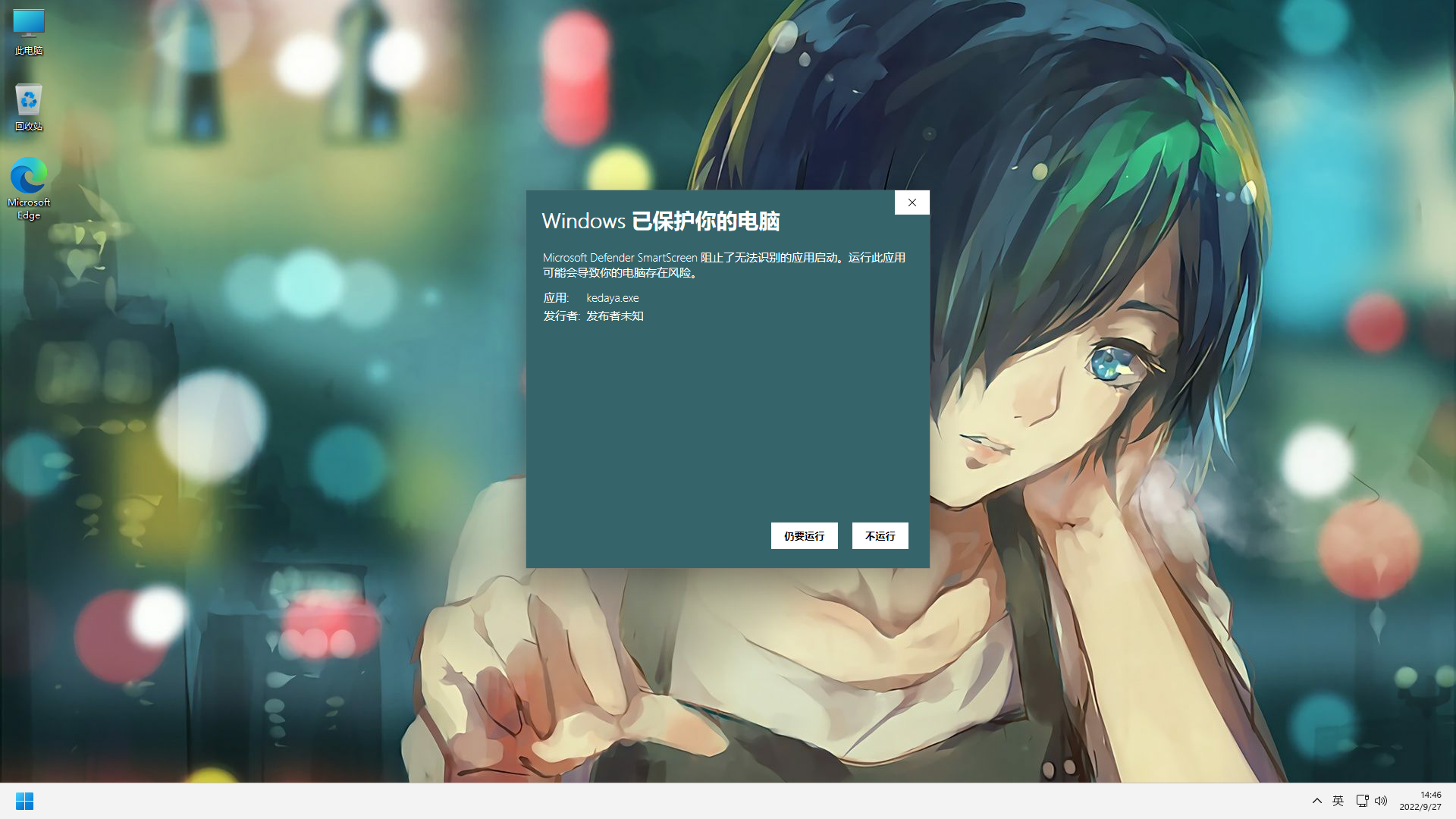 1. 运行提示“Windows已保护你的电脑”的文件;