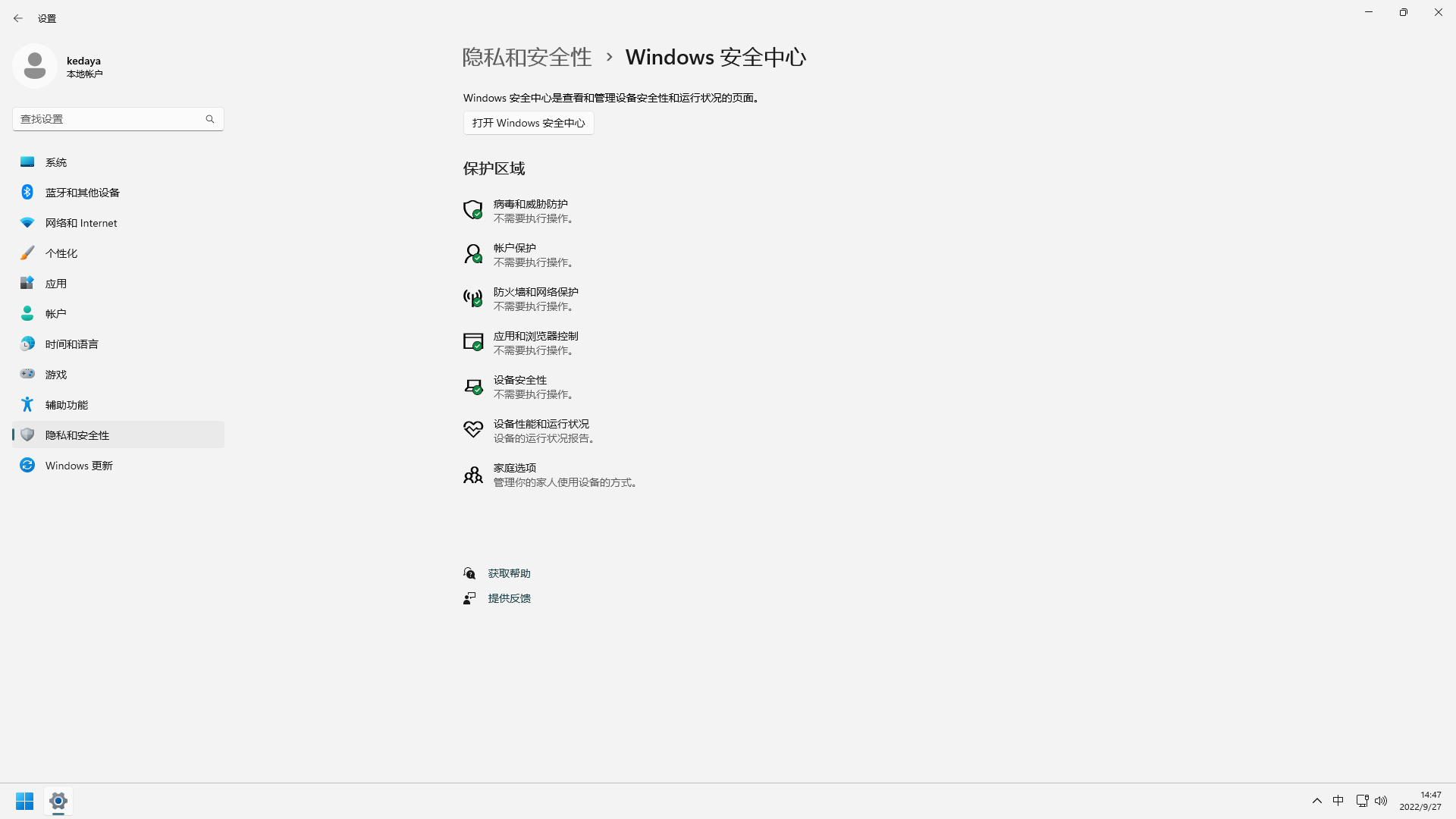 • [1]Windows 11访问路径:“设置” – “隐私和安全性” – “Windows安全中心”。