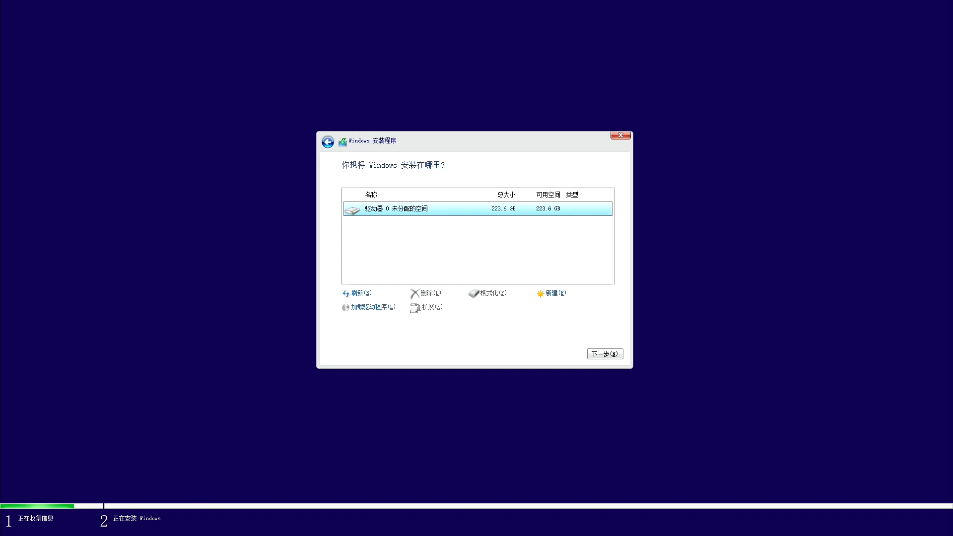 - 单击该“驱动器”,单击“下一步”即可开始安装Windows系统