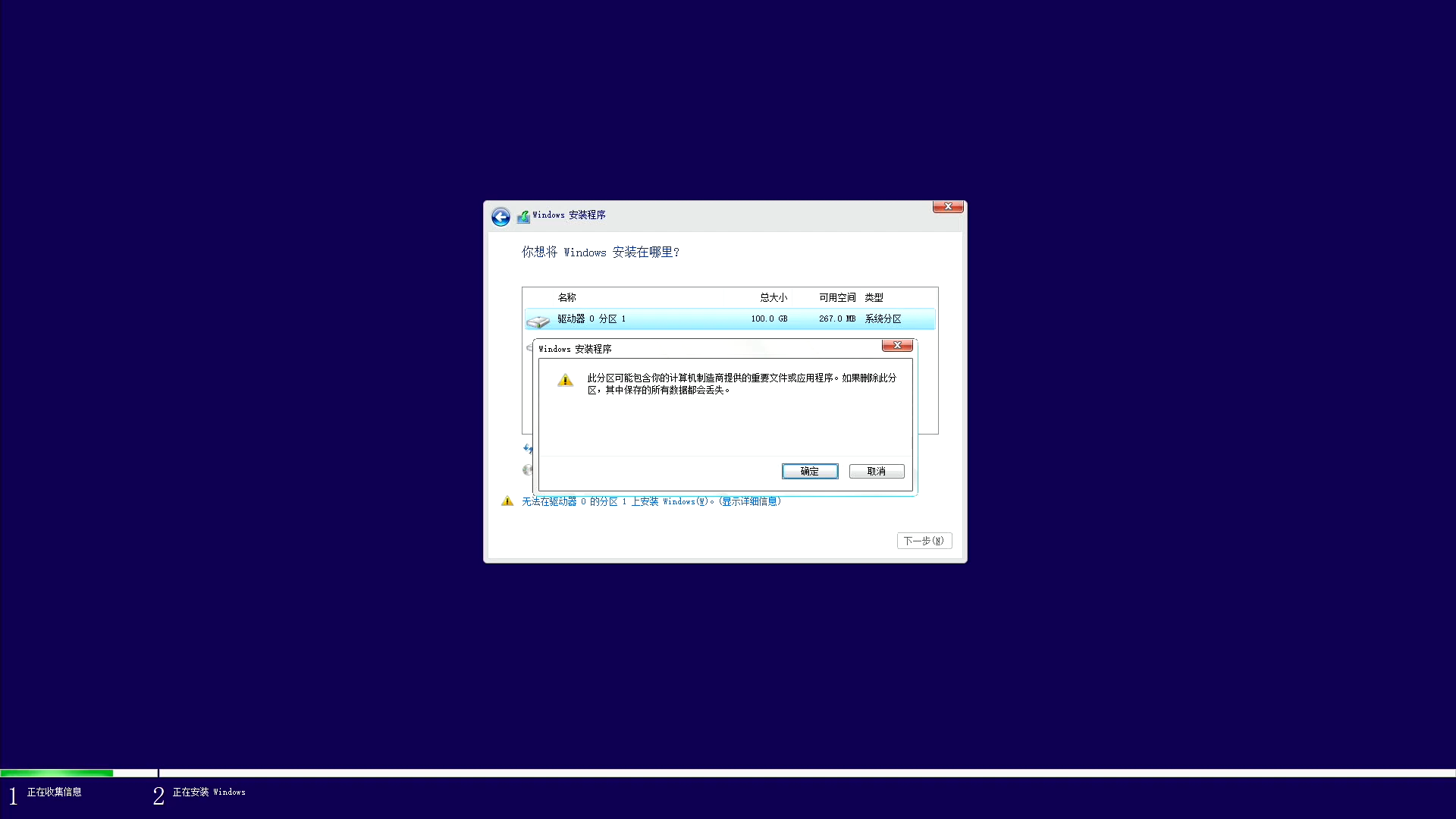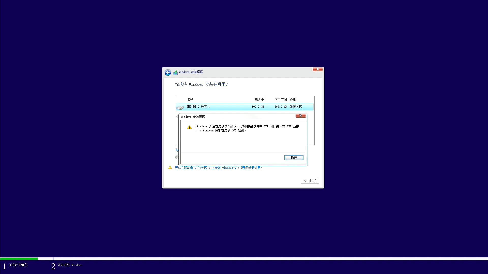 - 提示“无法在驱动器的分区上安装Windows”解决方法: